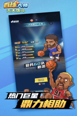 《天天饭斗》是一款融合美式漫画风格的篮球主题手游,玩家将化身俱乐部管理者,通过招募传奇球星与策略运营打造冠军球队。游戏获得NBA官方授权,完整收录现役及经典球员形象,从科比到库里等巨星均可纳入麾下,玩家可自由组建专属梦幻阵容,体验从训练营到季后赛的完整赛事征程。