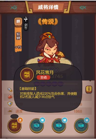 貂蝉作为高强度首领,拥有550亿生命值的恐怖面板,其主动技能具备双重威胁:对前排目标造成220%攻击力的高额伤害,同时随机削减两名敌方单位36点怒气值,极大限制我方技能释放频率。